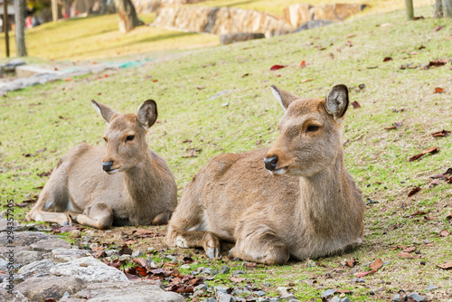 © leeyiutung, Fototapeta premium Deer in Nara, Japan in autumn season. Deer is cherished as a divine force of God
