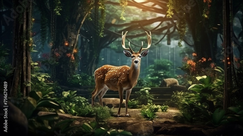 © Maria, Fototapeta premium deer in the forest created with Generative Ai
