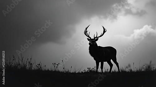 © Designer845, Obraz premium deer in the sunset silhouette