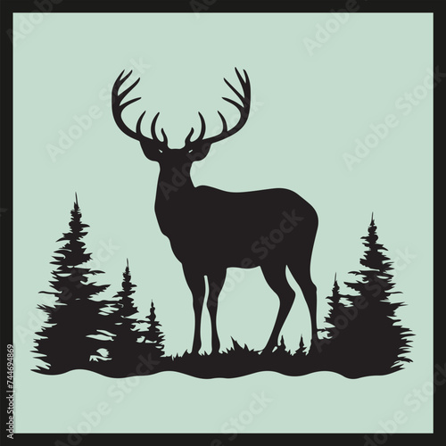 © fijulanam468, Obraz premium deer in the woods, deer black Silhouette vector