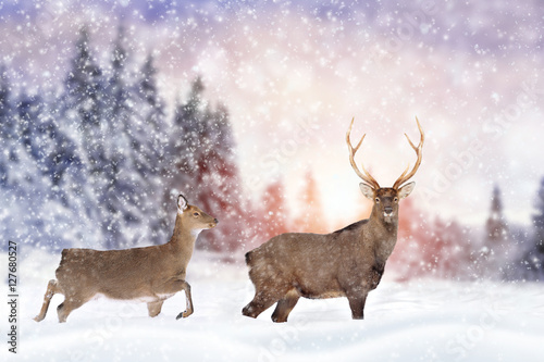 Fototapeta premium Deer in winter forest