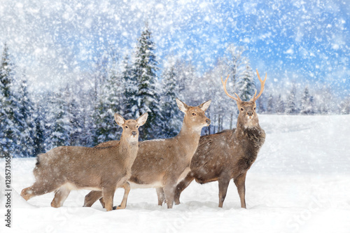 Fototapeta premium Deer in winter forest