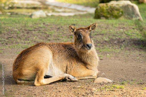 Fototapeta premium Deer lies on the ground.