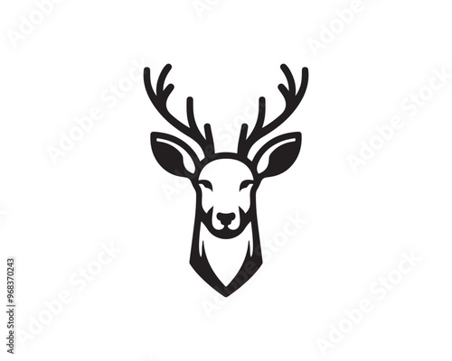 © Mamun360, Naklejka premium Deer logo vector template. Deer head icon symbol vector illustration. Deer silhouette logo black and white.