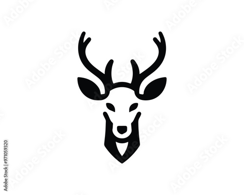 © Mamun360, Naklejka premium Deer logo vector template. Deer head icon symbol vector illustration. Deer silhouette logo black and white.