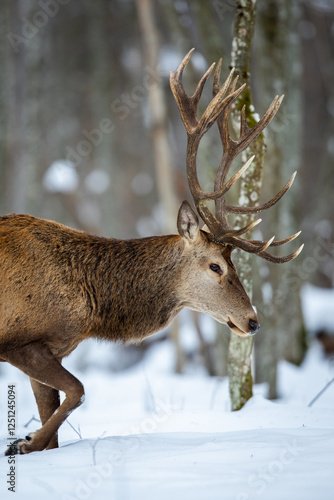 Fototapeta premium Deer male buck ( Cervus elaphus ) in the winter forest