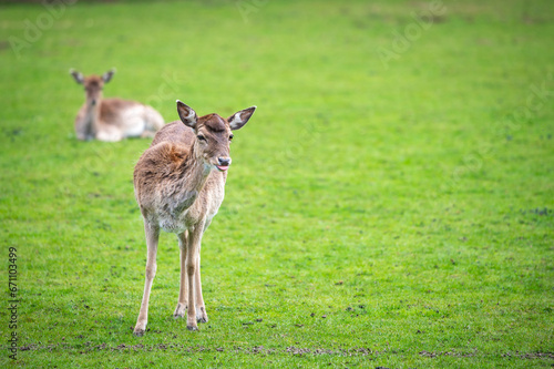 Fototapeta premium Deer on a green field, Dartmoor, Devon