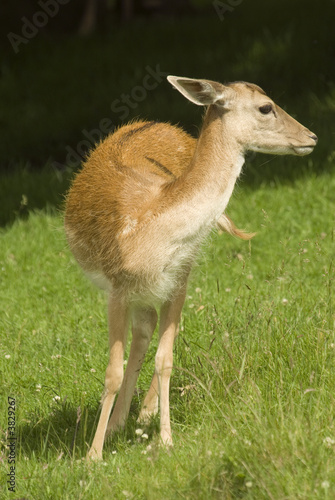 Fototapeta premium Deer on grass in meadow - portrait orientation