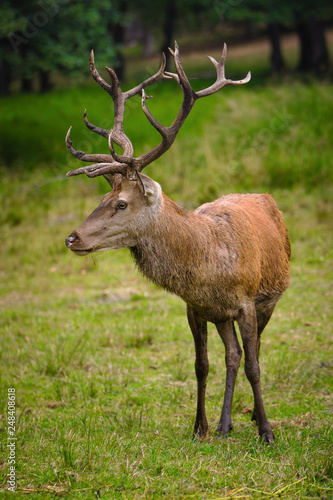 © Horner, Fototapeta premium deer on meadow standing and watching antlers