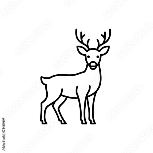 Fototapeta premium Deer Outline Minimal Vector — Simple Black Line Deer Drawing on White Background