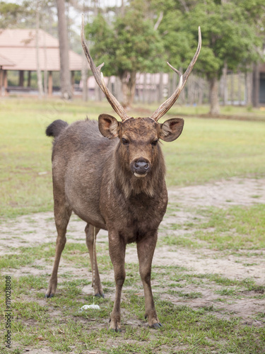 © thanespong, Fototapeta premium Deer pees on a grass field