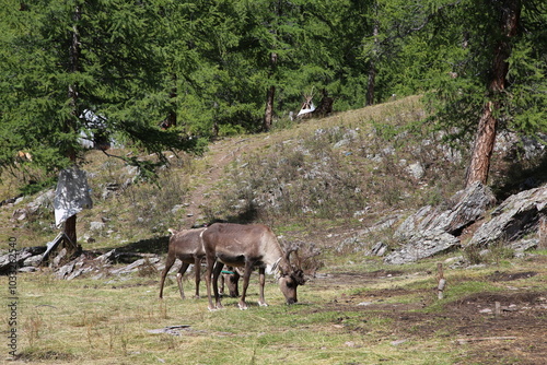Naklejka premium deer, reindeer, fawn, grand deer, antler, asia, russia, new year, christmas, tent wildlife, mongolia
