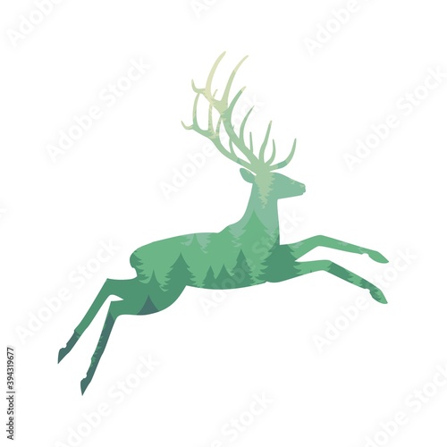 © Abundzu, Obraz premium Deer running and forest silhouette