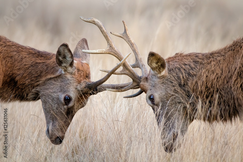© jgolby, Obraz premium Deer Rutting. Animals fighting mating season.