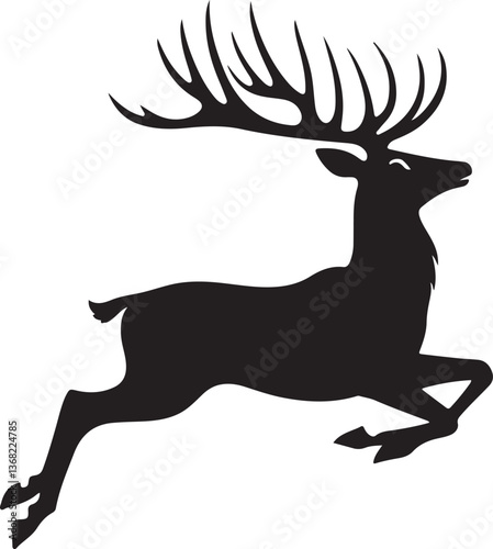 Obraz premium Deer silhouette vector illustration with antlers in a wildlife art style