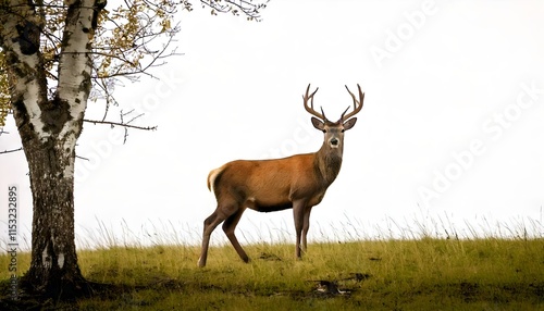 © pranit, Fototapeta premium Deer standing alone by the tree, peaceful wildlife, forest animal