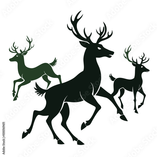 © Sadhin07, Obraz premium deer vector illustration bundle silhouette design