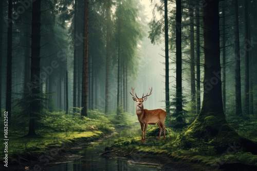 © Rawpixel.com, Fototapeta premium Deer wildlife antler animal nature remix