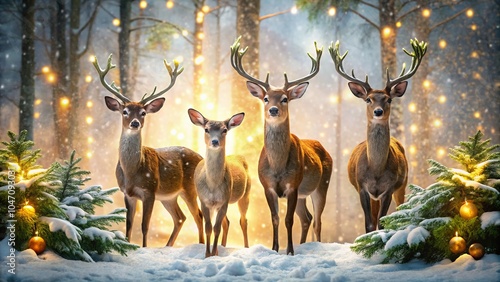 Fototapeta premium Deers Celebrating Christmas in a Winter Wonderland – A Heartwarming Documentary Scene