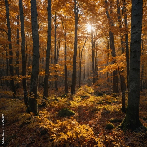 © Amjad, Fototapeta premium Default_A_dense_forest_bathed_in_the_golden_light_of_autumn_wi_0