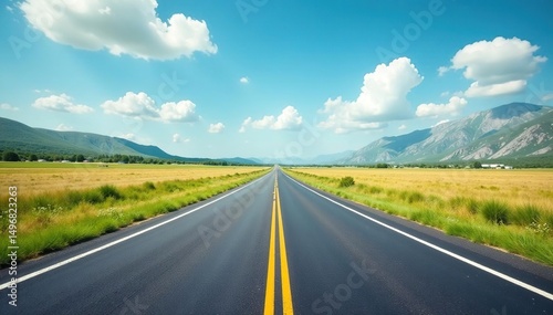© Chanayud, Fototapeta premium Defensive driving techniques shown on empty road, landscape, secure, horizon