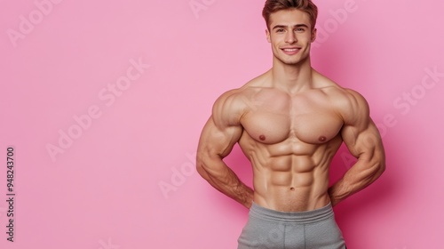 © Thavesak, Fototapeta premium Definition of Strength - Isolated Six-Pack Abs of Young Man on Pastel Pink Background