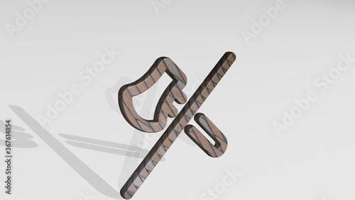 © Ali, Obraz premium DEFORESTATION AXE FORBIDDEN casting shadow with two lights. 3D illustration of metallic sculpture over a white background with mild texture. tree and environment