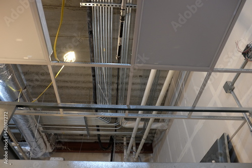 Obraz premium 90 degree bend in conduit above ceiling grid