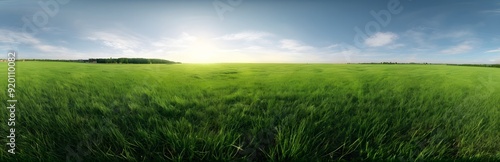 © Marco Mamdouh, Obraz premium 360 degree large green grass field. HDRI spherical panorama.