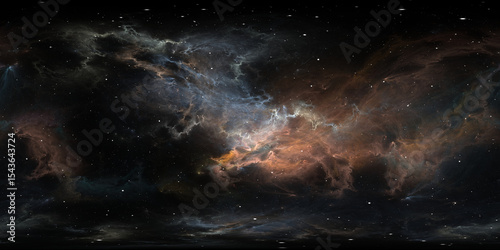Fototapeta premium 360 degree space nebula. Giant interstellar cloud with stars, equirectangular...