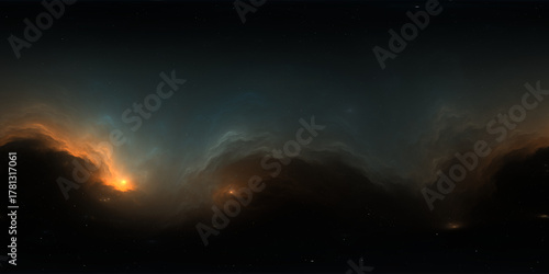 Fototapeta premium 360 degree space nebula. Giant interstellar cloud with stars, equirectangular...