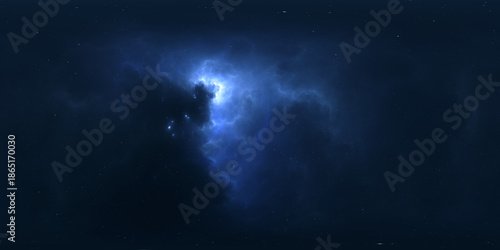 Fototapeta premium 360 degree space nebula. Giant interstellar cloud with stars, equirectangular...