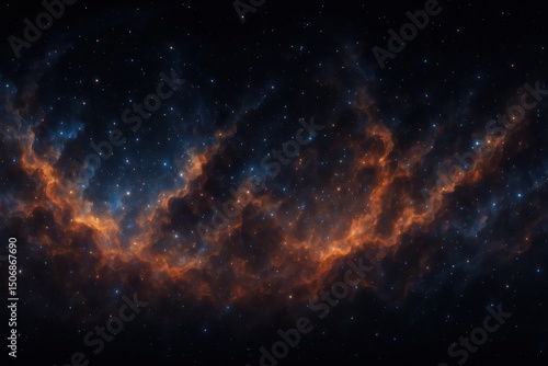 © Bijac, Naklejka premium 360 Degree Space Nebula Panorama Equirectangular Projection Environment Map HDRI Spherical Background Stars Clouds Cosmic Dust 3D Illustration Sci Fi Art