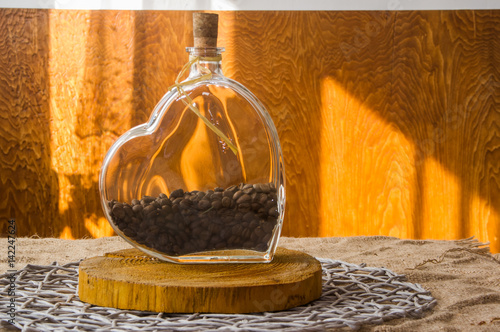 © Krzysztof Matloch, Obraz premium dekoracyjna kompozycja z ziarnistą kawą w szklanym słoiku