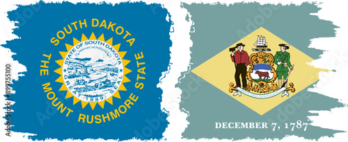 © gladder, Fototapeta premium Delaware and South Dakota states grunge brush flags connection, vector