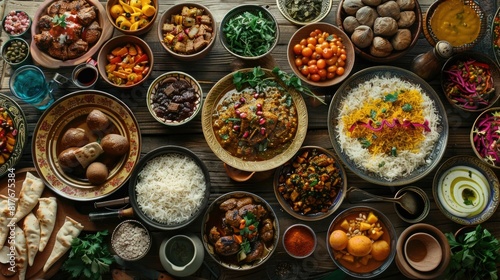 Fototapeta premium Delectable Spread of Traditional Muslim Cuisine Invites a Journey Through Taste and Tradition