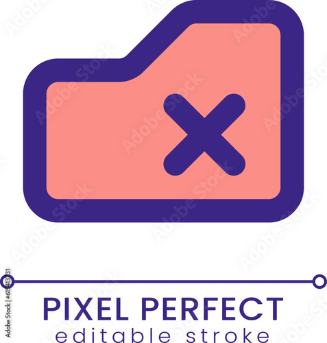 Fototapeta premium Delete from folder pixel perfect RGB color ui icon. Remove folder. Storage....