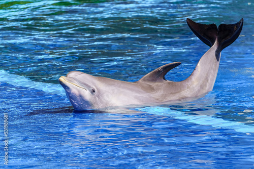 © josemiguelsangar, Naklejka premium Delfin posing out of the water for the cameras.