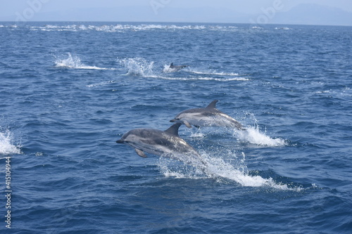 © Alfredo, Fototapeta premium Delfines listados (Stenella coeruleoalba) saltando en el mar