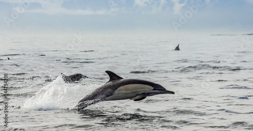 Fototapeta premium Delfiny wyskakują z wody z dużą prędkością. Afryka Południowa. False Bay....