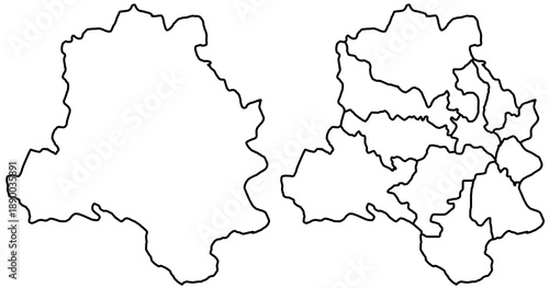 © Akhtar Ansari , Fototapeta premium Delhi map, Delhi outline and districts state map set - illustration version