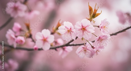 Obraz premium Delicadas flores de cerezo rosadas floreciendo con suave bokeh creando una...
