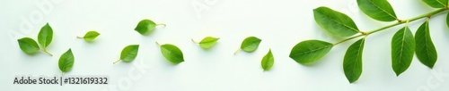 © Sutasinee, Fototapeta premium Delicate Acacia leaves scattered on a white surface, flora, green, nature