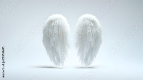 Obraz premium Delicate and fluffy white angel wings set at an angle against a pure white...