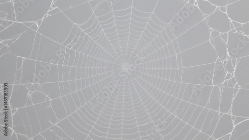 Fototapeta premium Delicate and intricate spider web pattern displayed against a soft and subtle gray backdrop