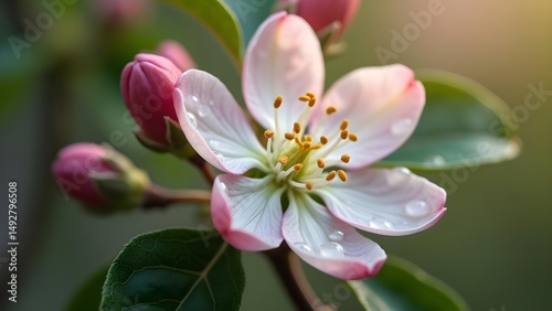 © mukuro, Obraz premium Delicate Apple Blossom with Dew Drops: A Close-Up of Springtime Beauty