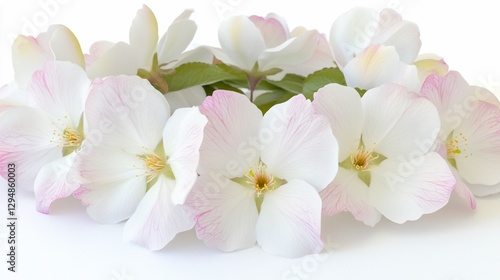 Obraz premium Delicate apple blossoms arranged on white background, springtime