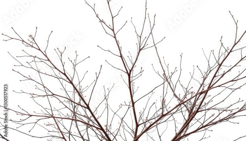 Obraz premium Delicate, bare branches isolated against a pure white backdrop, silhouette, element