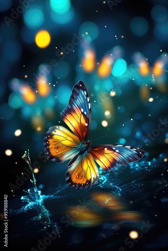 © MMerellinn, Fototapeta premium Delicate beauty - butterflies background, serene wallpaper design perfect for banners, posters, greeting cards, featuring vibrant colors, to enhance your creative projects and flyers