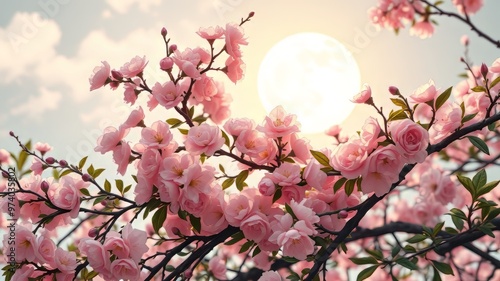 Fototapeta premium Delicate, bell-shaped flowers in soft pastel hues hang gracefully from...